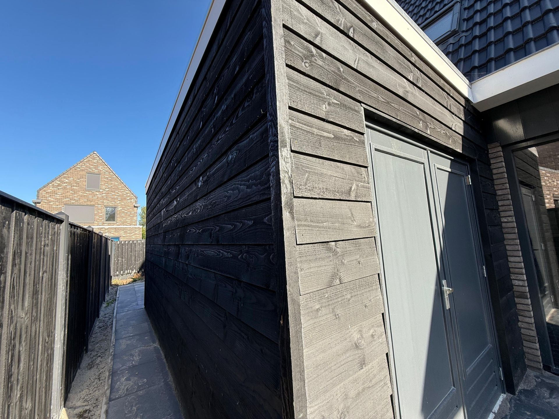 Oplossing: Een nieuwe garage aangebouwd met hergebruikte openslaande deuren, waardoor dit de eigenaar veel geld scheelde. We hebben gebruik gemaakt van Zweeds rabatdelen.